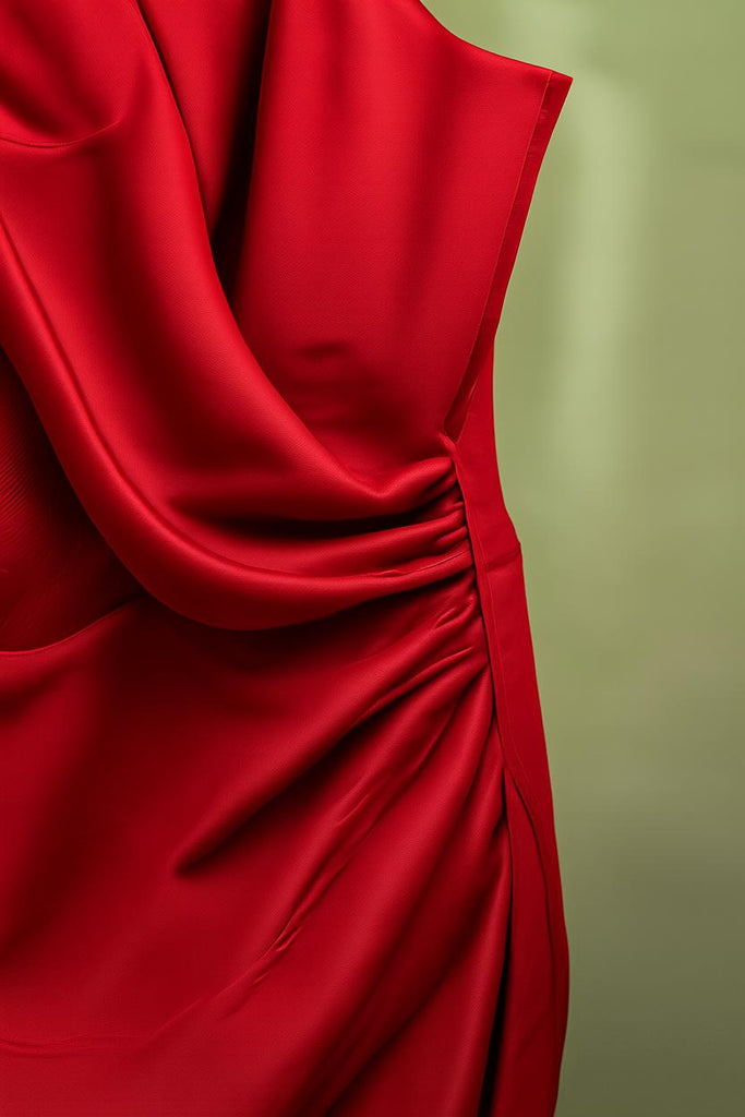Made from a premium blend of polyester and spandex, this dress offers luxurious comfort, a slight stretch, and a beautiful drape. To maintain its pristine condition, we recommend hand washing in cold water or dry cleaning. Lay flat to dry to preserve its perfect shape.